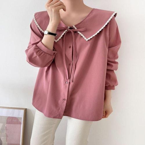 여성 2컬러 빅카라 리본 스트링 셔츠 블라우스 WFK5SJG