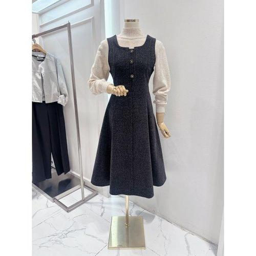 [비비드 시크릿가너][VIVID] 헤링본 하이넥 모던 원피스