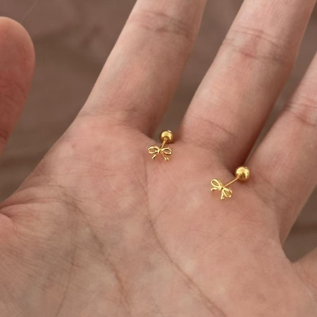 TEMU 디테일 미니 리본 귀걸이, 골드 톤 추가, 부드럽고 달콤한 틈새 귀걸이