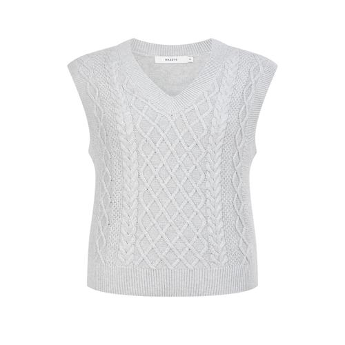 헤지스 여성 [아이코닉] 케이블 V넥 베스트 그레이 (HSSW6AC13G2)
