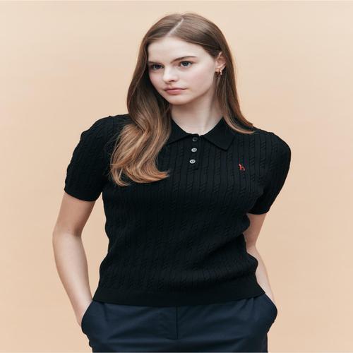 헤지스 여성 면 케이블 반소매카라 풀오버 블랙 (HSSW5AC23BK)