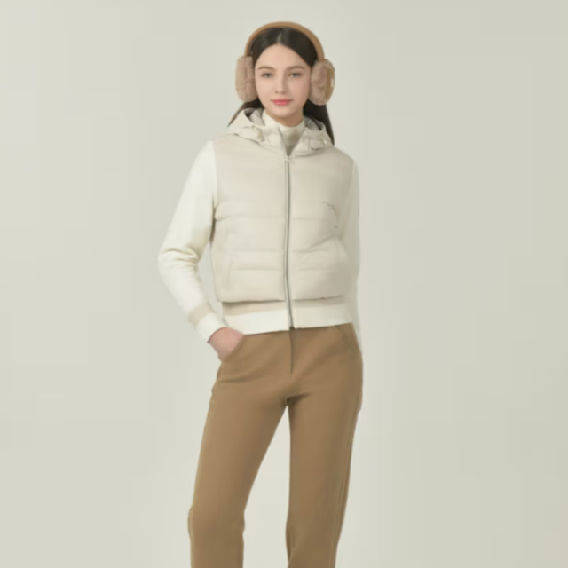 헤지스 골프 여성 25FW 베이지 여성 경량 스웨이드 하이브리드 다운 후드 집업 HWSW5D751I2