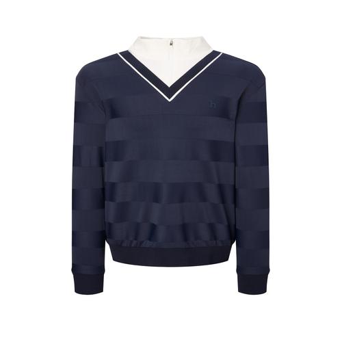 헤지스 골프 네이비 남성 니트 하이브리드 쿼터집 티셔츠 (HUTS5C617N3)