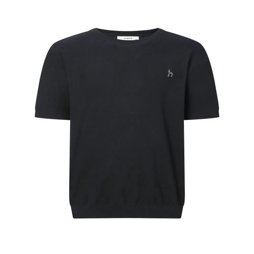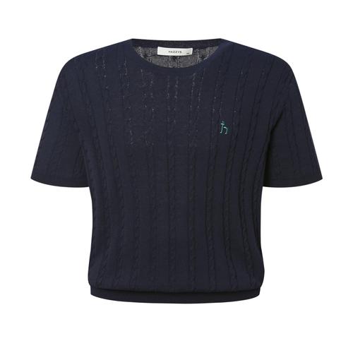 헤지스 남성 [아이코닉] 네이비 케이블 반팔 라운드 니트 (HZSW5B559N2)