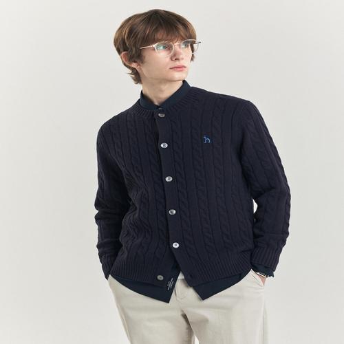 헤지스 남성 네이비 램스울 케이블 라운드 가디건 (HZSW4D203N2)