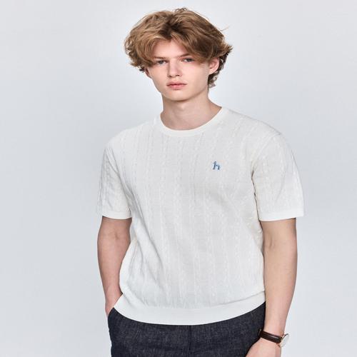 헤지스 남성 [아이코닉] 아이보리 케이블 반팔 라운드 니트 (HZSW5B559IV)