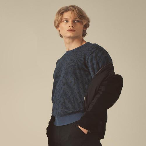 헤지스 골프 24FW 가격인하네이비 남성 자카드 패턴 라운드 스웨터 HUSW4C613N2