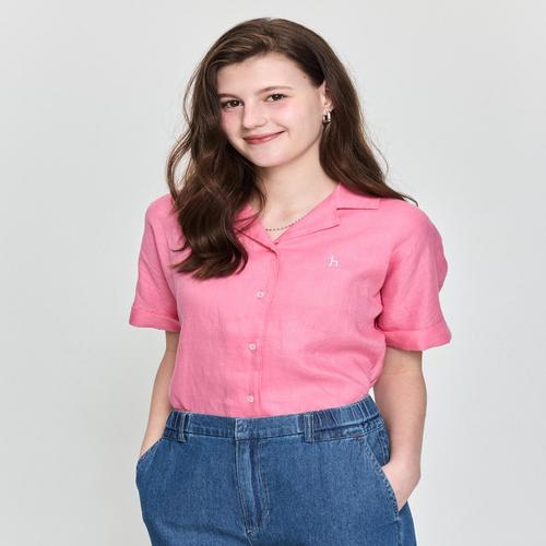 헤지스 여성 25SS 린넨 반팔셔츠 핑크 HSSH5BC44P2