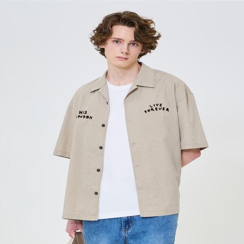 헤지스 남성 [시즌오프][HIS] 워싱 오픈카라 반팔셔츠 (HZJU5E808I2)