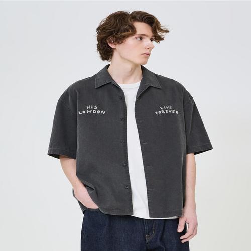 헤지스 남성 [시즌오프][HIS] 워싱 오픈카라 반팔셔츠 (HZJU5E808CG)