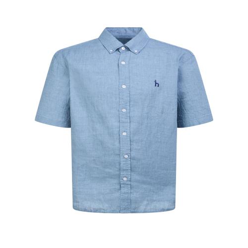 헤지스 남성 블루 버튼다운 린넨 반팔캐주얼셔츠 (WHSH5B502B1)