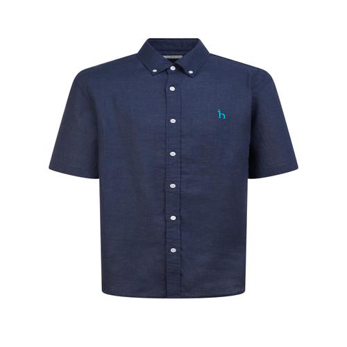 헤지스 남성 네이비 버튼다운 린넨 반팔캐주얼셔츠 (WHSH5B502N2)