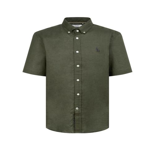 헤지스 남성 [스테디셀러] 카키 버튼다운 린넨 반팔캐주얼셔츠 (WHSH5B501K2)