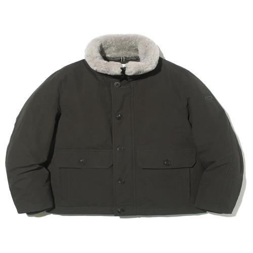 헤지스 남성 챠콜 그레이 양털 카라 구스다운 패딩 점퍼 (HZJU4D407CG)