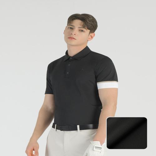 헤지스 골프 [시즌오프]블랙 남성 소매 포인트 반팔 카라티 (HUTS5B311BK)