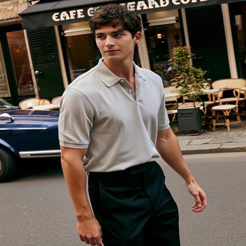 헤지스 남성 [쿨라이트] 그레이 와플 조직 카라티 (HZTS5F401G1)