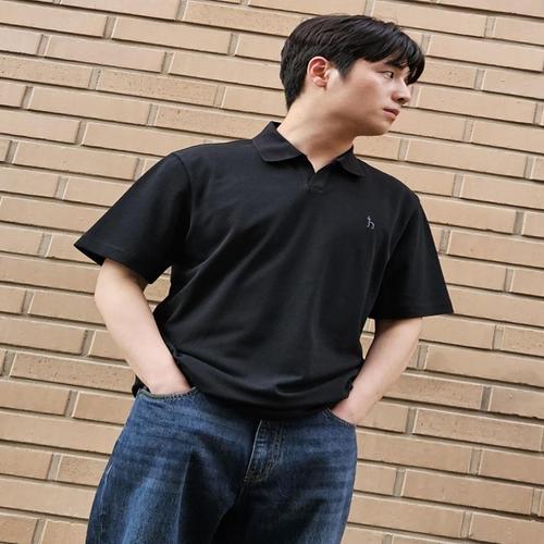 헤지스 남성 솔리드 오픈 카라티 (HZTS5B411BK)