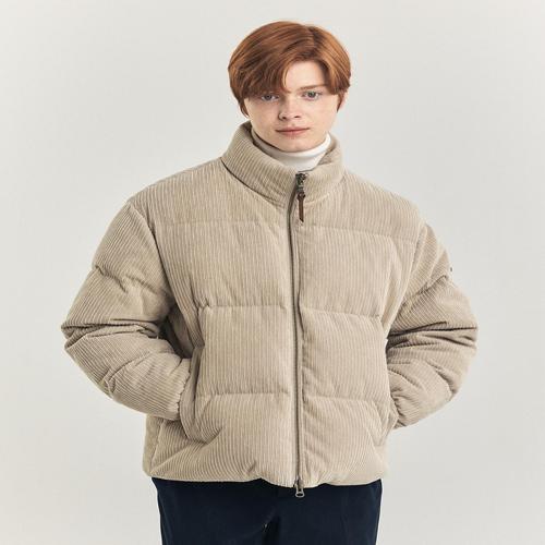 헤지스 남성 베이지 코듀로이 구스다운 패딩 점퍼 (HZJU4D502I2)