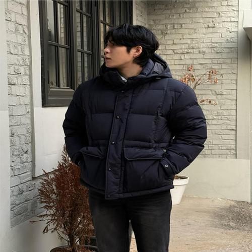 헤지스 남성 네이비 단색 구스다운 패딩점퍼 HZJU5D403N3