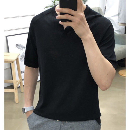 [옷자락]남녀공용 슬림핏 트임 헨리넥 반팔티 여름용