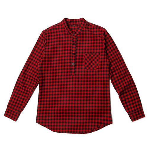KING 가을티셔츠 깅엄체크 포켓 헨리넥 남자 (WFI0VMB)