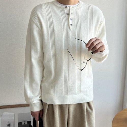 머시따 남성용 헨리넥 오버핏 반오픈 단추 니트
