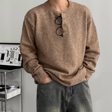 [1+1] 남자 헨리넥 니트 캐시 긴팔 오버핏 반폴라 (1270-2)