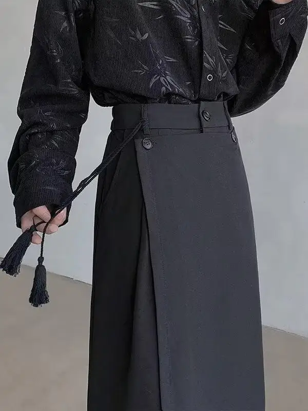 투웨이 웨어 캐주얼 와이드 레그 팬츠 스커트 다크 컬러 블록 루즈 스트레이트 컷 젊고 트렌디한 프린트 노아이론 처리 나인피스 팬츠
