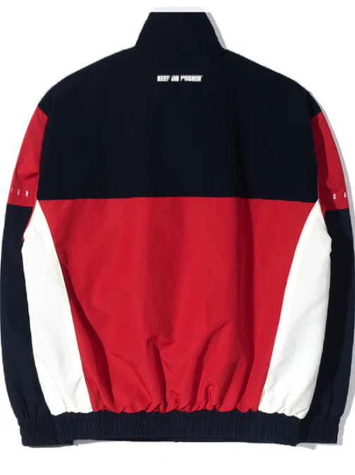 방수 방풍 컬러 블록 재킷 청소년 패션 폴리에스터 원단 긴 소매 V넥 지퍼 클로저 모자 없음
