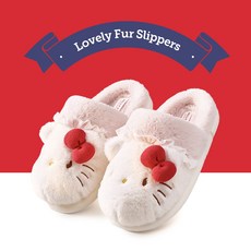 YAPOGI 헬로키티 여성 통굽 털슬리퍼 기모 미끄럼 방지 슬리퍼
