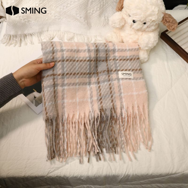 TEMU 1개 우아한 스카프 | 한국 스타일 다용도 체크 넥워머, 겨울철 캐주얼 주말룩 및 선물용으로 적합.