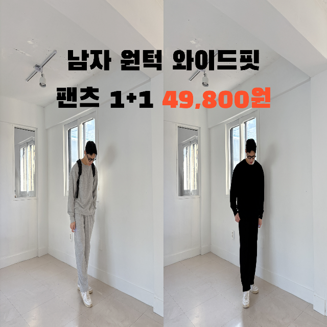 [1+1] 2장 묶음 이브 남성용 오버핏 베이직 무지 빅사이즈 조거 팬츠 4color (6077-2)