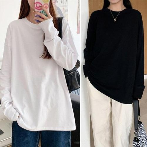 여성 기본 형광티셔츠 맨투맨티셔츠 라운드넥 무지 긴 WD911E2
