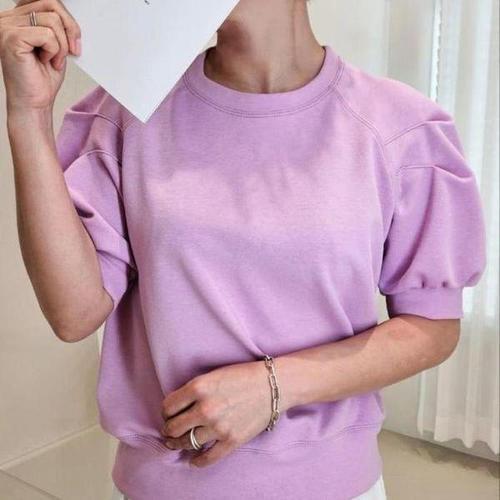[다잇템_패션]여자 호박소매 시보리 컷아웃 민무늬 맨투맨