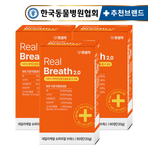 펫생각 강아지 기관지 영양제 60정 2개월분 3박스 리얼 브레스 기관지협착증 기침 감기 호흡기 배도라지