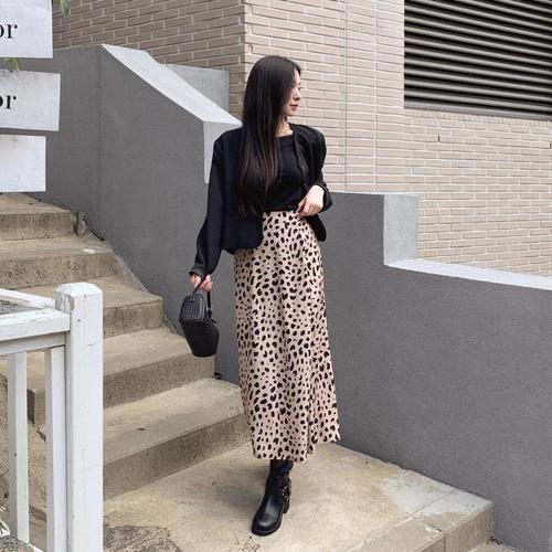 [트위]호피 A라인 롱 스커트 TJHBFSK021