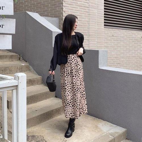 하이데일리 주름 레오파드 미르 호피 플리츠 롱스커트