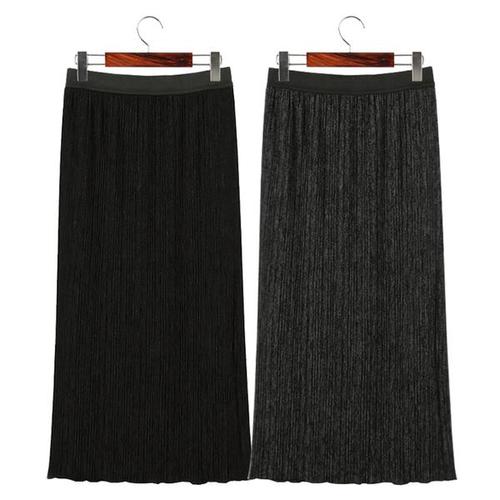 [허밍퍼플]여성용 2773-프리트 롱 스커트 세련된 주름 셔링 치마 오버 플러스 빅사이즈 여성의류