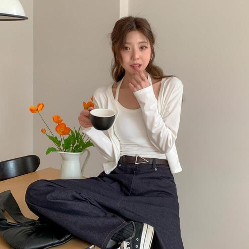 [옷자락]여자 봄 여름 여리핏 홀터넥 캡나시 가디건 세트