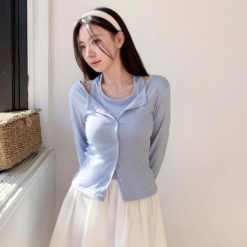 [미라클세븐]여성 체형 보정 홀터넥 레이어드 긴팔 카디건