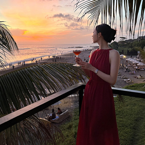 [하프클럽/셀러허브_여성트랜드패션]여성 우아한 여름 휴양 원피스 홀터넥