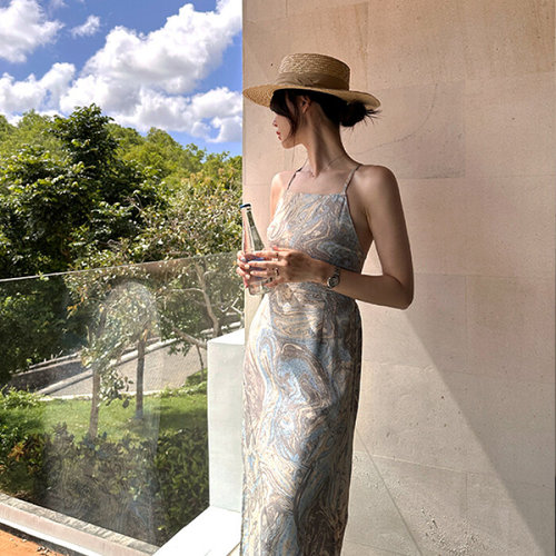 더클립 / 마블 백오픈 홀터넥 롱원피스 여름 바캉스룩