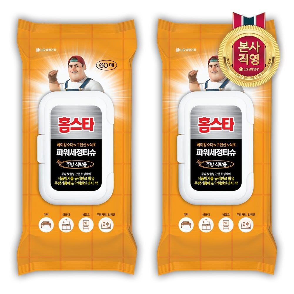 홈스타 살균세정티슈 주방식탁용 60매 x 2개