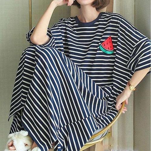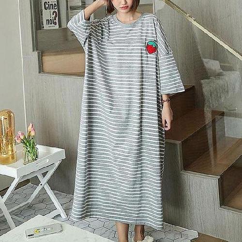 [셀러허브_여성트랜드패션]ONM 스트라이프 롱원피스 여름 오버핏 홈웨어