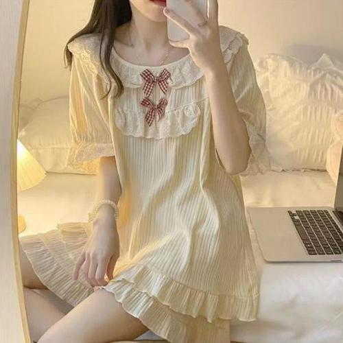 [신상오픈런]멜크츠 레이스장식 파자마 하프팬츠 숏슬리브 여성 주름디테일 썸머 CDD9AA_18874737_597559