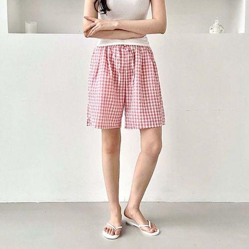 [에이치플러스몰]여성 여름 데일리 베이직 스타일 홈웨어 마실룩 모이드 타탄 체크 4부 반바지
