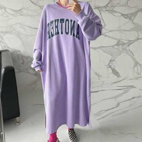 [옷자락]여자 보라색 레터링 양트임 빅사이즈 홈웨어 롱원피스