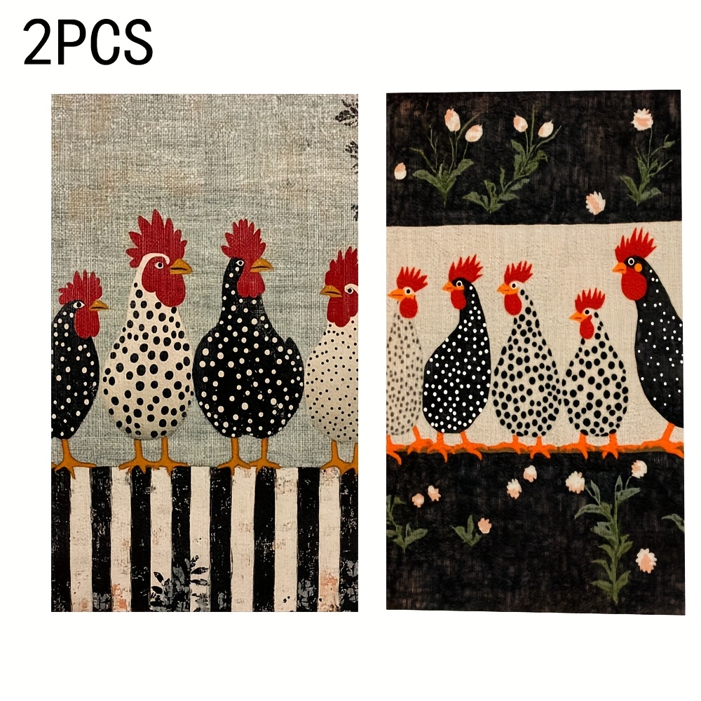 TEMU 1개 또는 2개 레트로 농가 닭 패턴 주방 타월 - 귀여운 수탉 & 닭 디자인, 주방, 욕실, 파티 장식을 위한 튼튼한 폴리에스터 행주 - 세탁기 사용 가능한 홈, 레스토랑 또는 크리스마스 장식용 선물