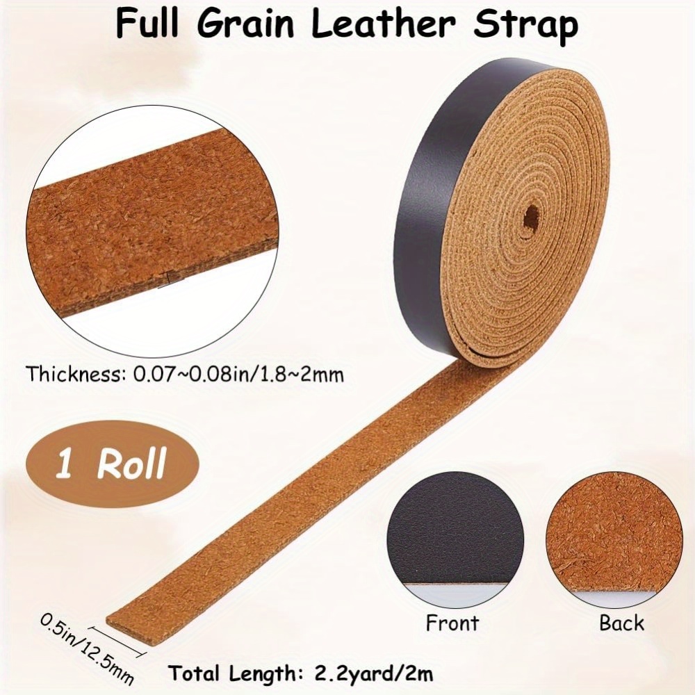 TEMU 진짜 풀 그레인 소 가죽 코드, 1 롤, 2m x 12.5mm x 1.8mm, 커피 브라운, AB 등급 가죽 스트립, 공예, 재봉, DIY 프로젝트용