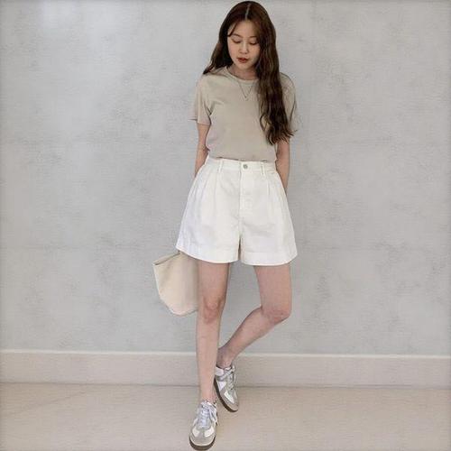 [다잇템]여성 크림색 면원단 화이트진 탄탄 반바지